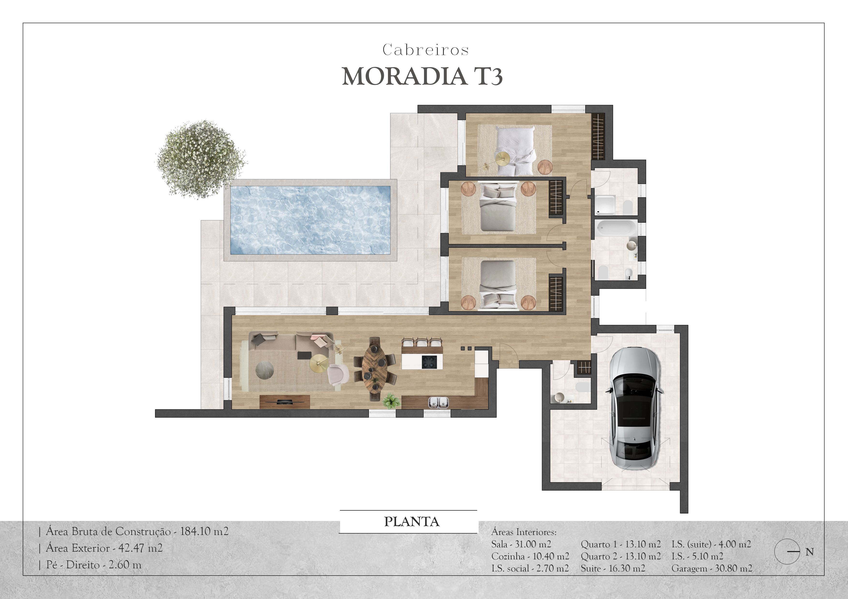 Com 190 m² de área útil e 89 m² de área exterior coberta, a moradia dispõe de: